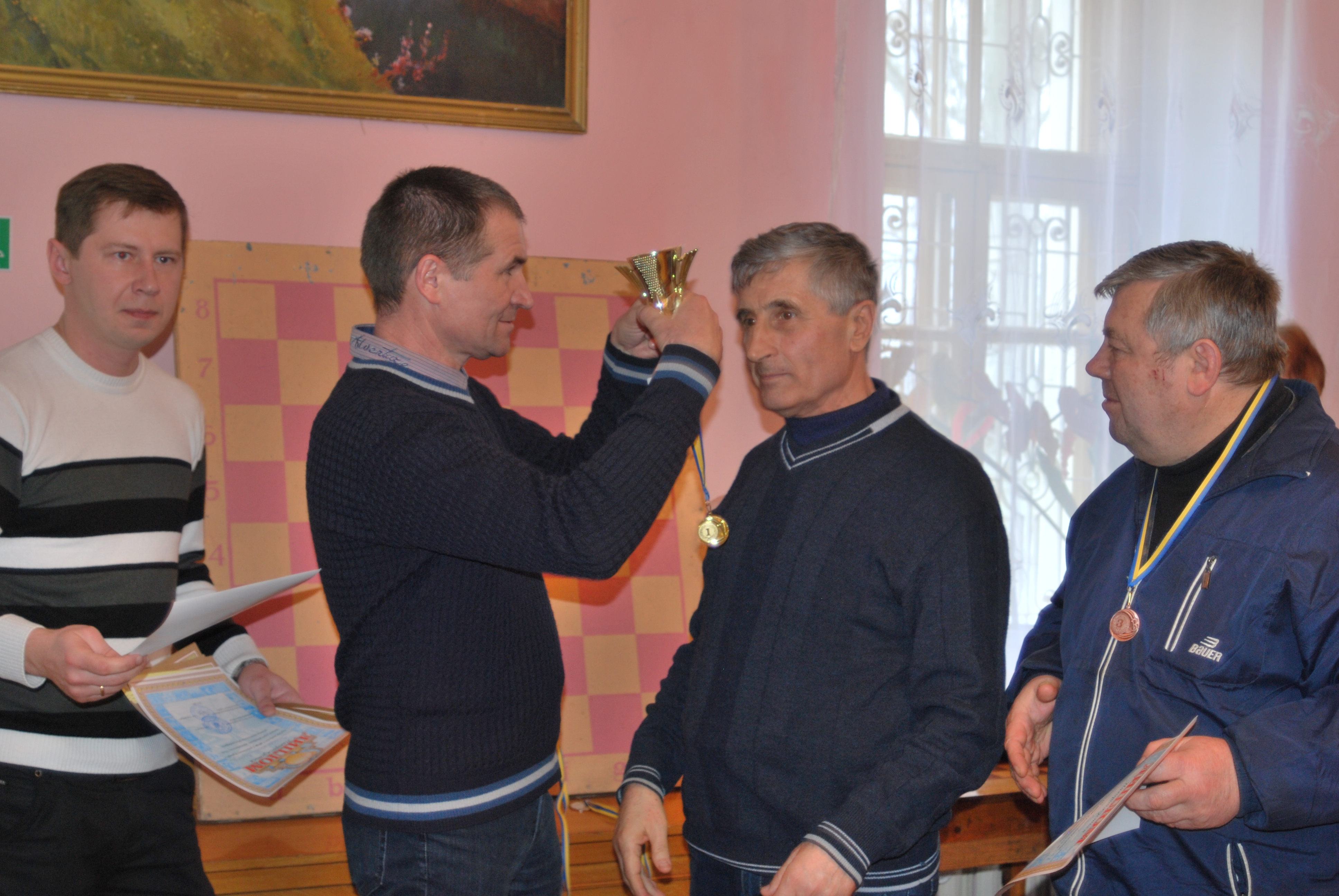 Отже, серед любителів шахів трійка лідерів стала такою: бронзовий призер - Віктор Тимошенко (Радсадівська сільрада), на другому місці - Юрій Пасєва із Надбузького (минулого року показав п’ятий результат), а переможцем, як і очікувалось, став лікар за професією, минулорічний тріумфатор Василь Хайсин - представник ольшанської команди. До п’ятірки увійшли ольшанець Олександр Репринцев та представник Петрівської сільради Анатолій Літвінов.