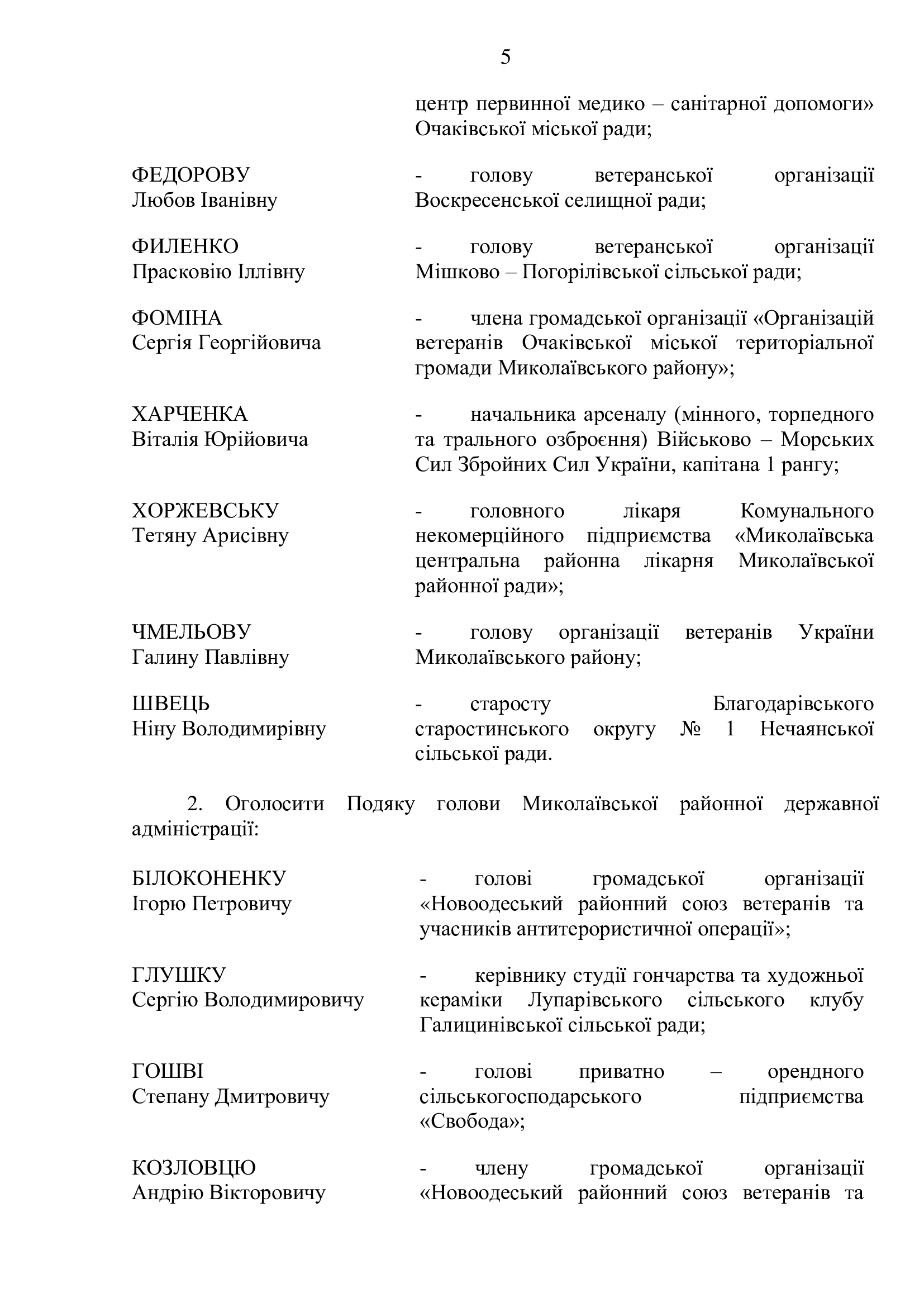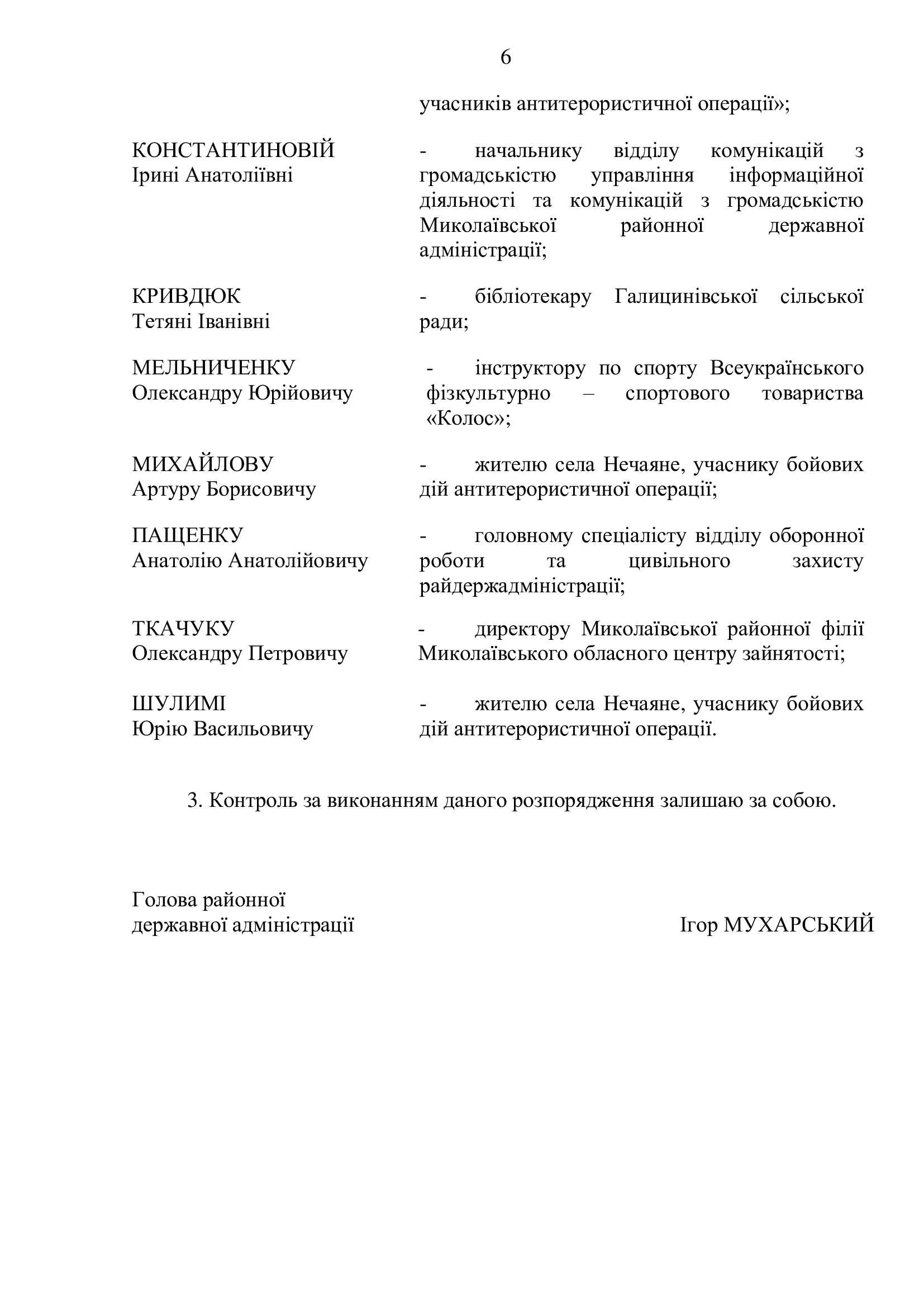 Персоналії Миколаївського району, які внесли вклад у розбудову незалежної України та нагородженні Почесною грамотою і Подякою голови Миколаївської районної державної адміністрації до Дня Державного Прапора України та 30-ї річниці Незалежності України .